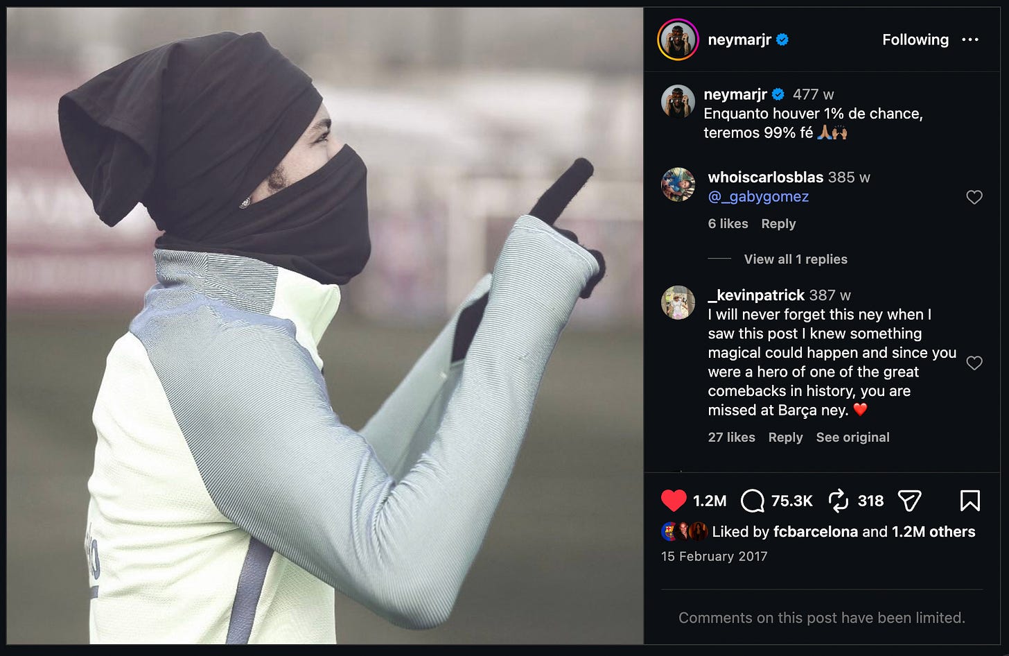 This mindset was famously immortalized by football star Neymar Jr. during a season that looked mathematically dead. He didn’t look at the stats; he posted: “As long as there is a 1% chance, we will have 99% faith.”